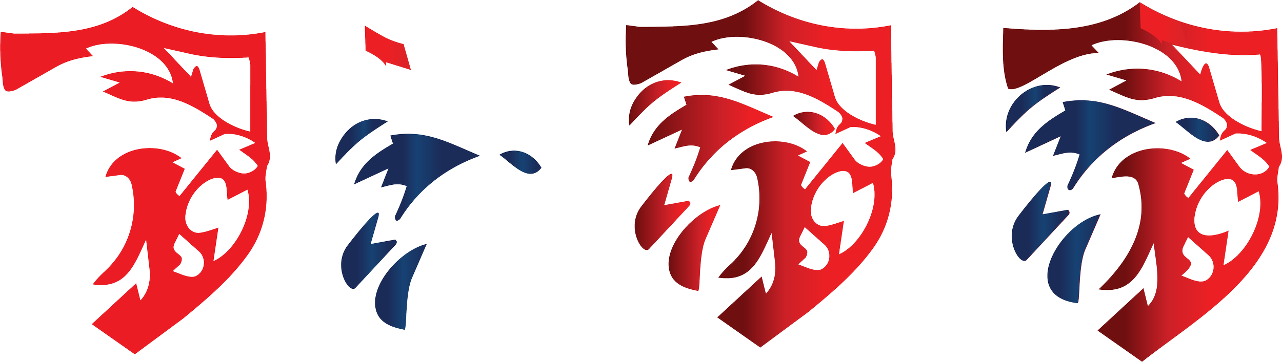 The design uses a shield and a lion to represent power, protection, and authority. The red and blue color scheme is highly visible and instills a sense of trust. The uppercase font style is powerful and professional. The graphics represent a sense of being ready and in control.